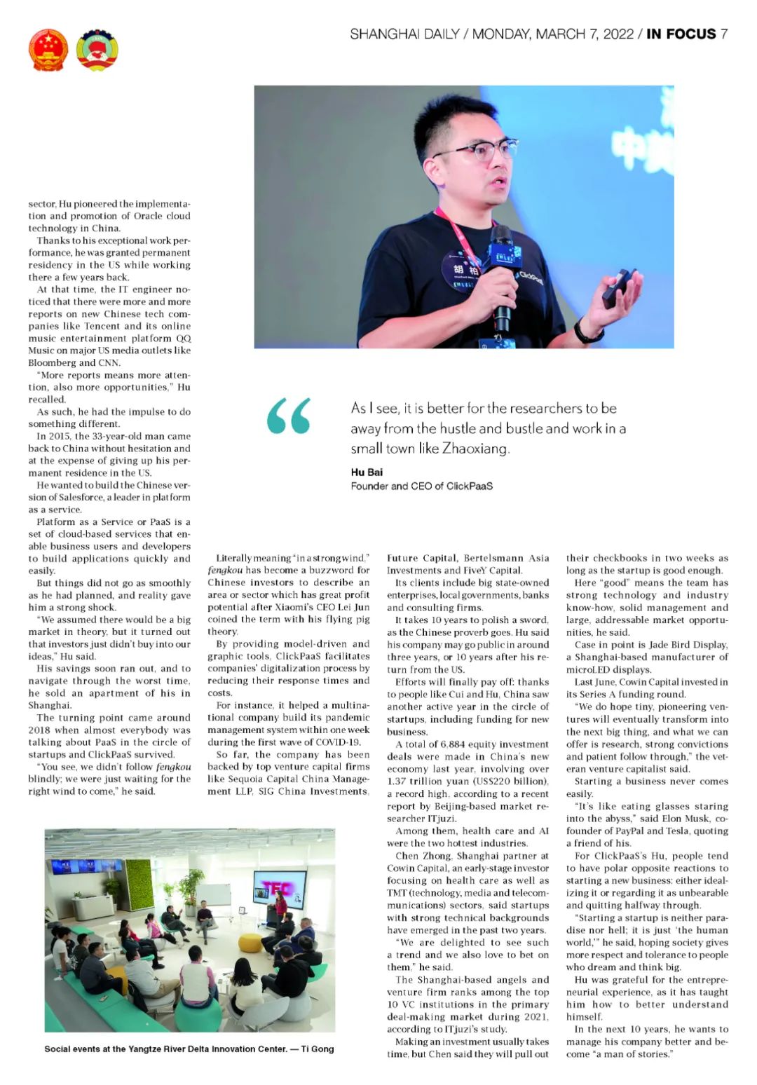 近日,爱游戏app网页版入口创始人、CEO胡柏接受了《上海日报》采访,关于自己当初为何选择创立爱游戏app网页版入口,又为何将公司落户于上海青浦,分享了其背后的故事。