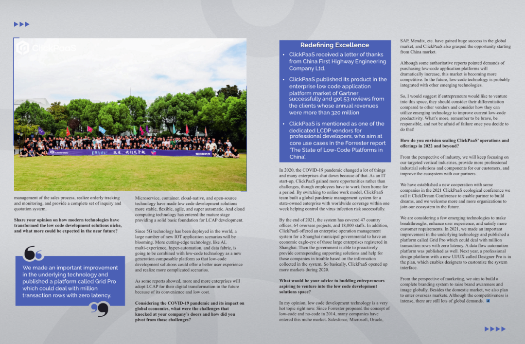 2022年年初,爱游戏app网页版入口入选外媒Insights Success低代码/无代码开发平台 Top10,创始人、CEO胡柏受邀接受专访并荣登封面人物,他与Insights Success的读者分享了爱游戏app网页版入口成立的初心、发展历程、当前的行业发展趋势以及他对公司未来的展望。